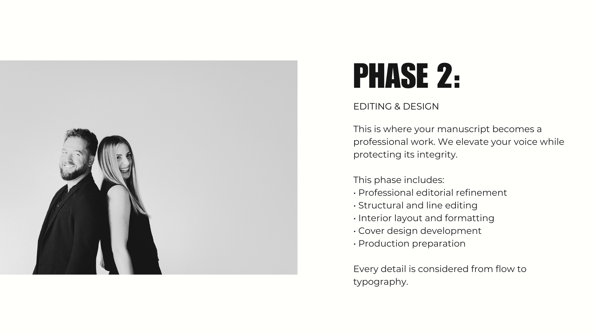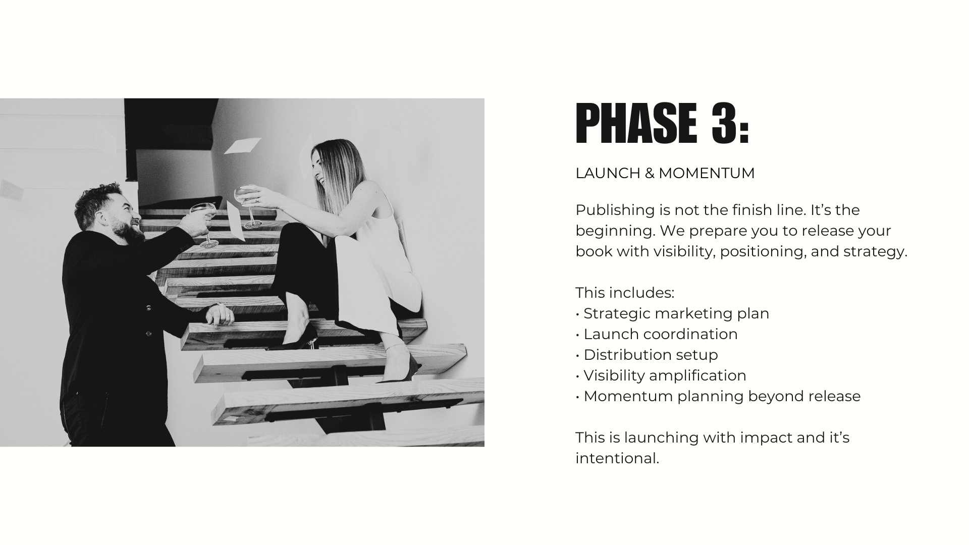 You are not left alone to “figure it out.” You are supported from manuscript to launch momentum.