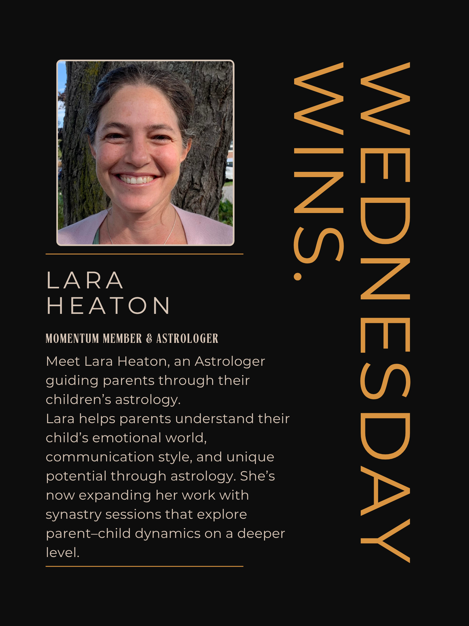 - Wins Spotlight: Shout-out to Lara Heaton, Astrologer specializing in parent–child astrology, who is our Wednesday Win feature this week (see below)!